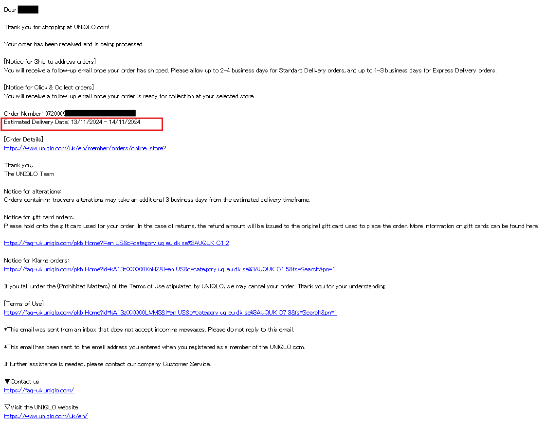 Expected delivery timeframes may vary due to the stock status of individual products within an order. Please be aware that your expected delivery date is specified at checkout, in purchase history, and order confirmation emails.